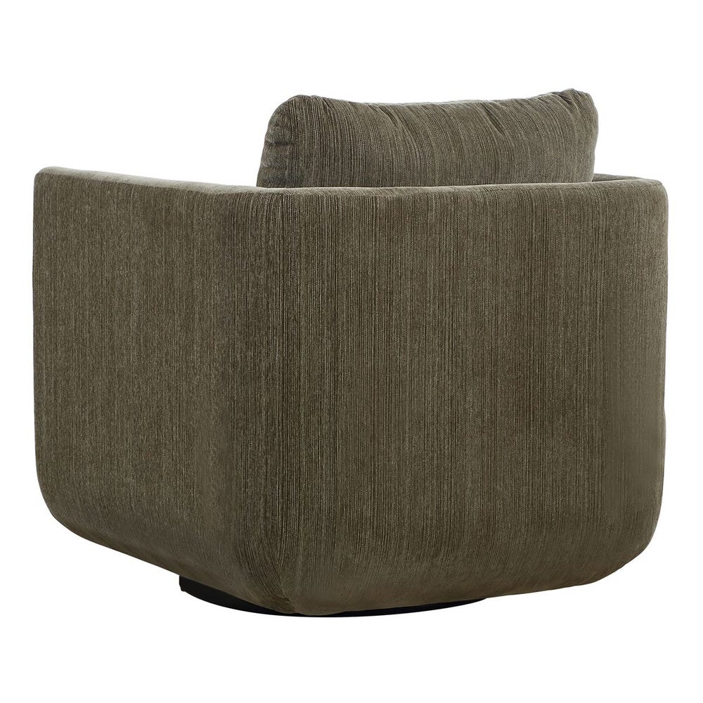 Curves Abound Creating Style And Ease, Featuring A Rounded Frame That Cradles The Base And Rests On A Hidden Swivel. Fully Upholstered In A Rich Textured Chenille.