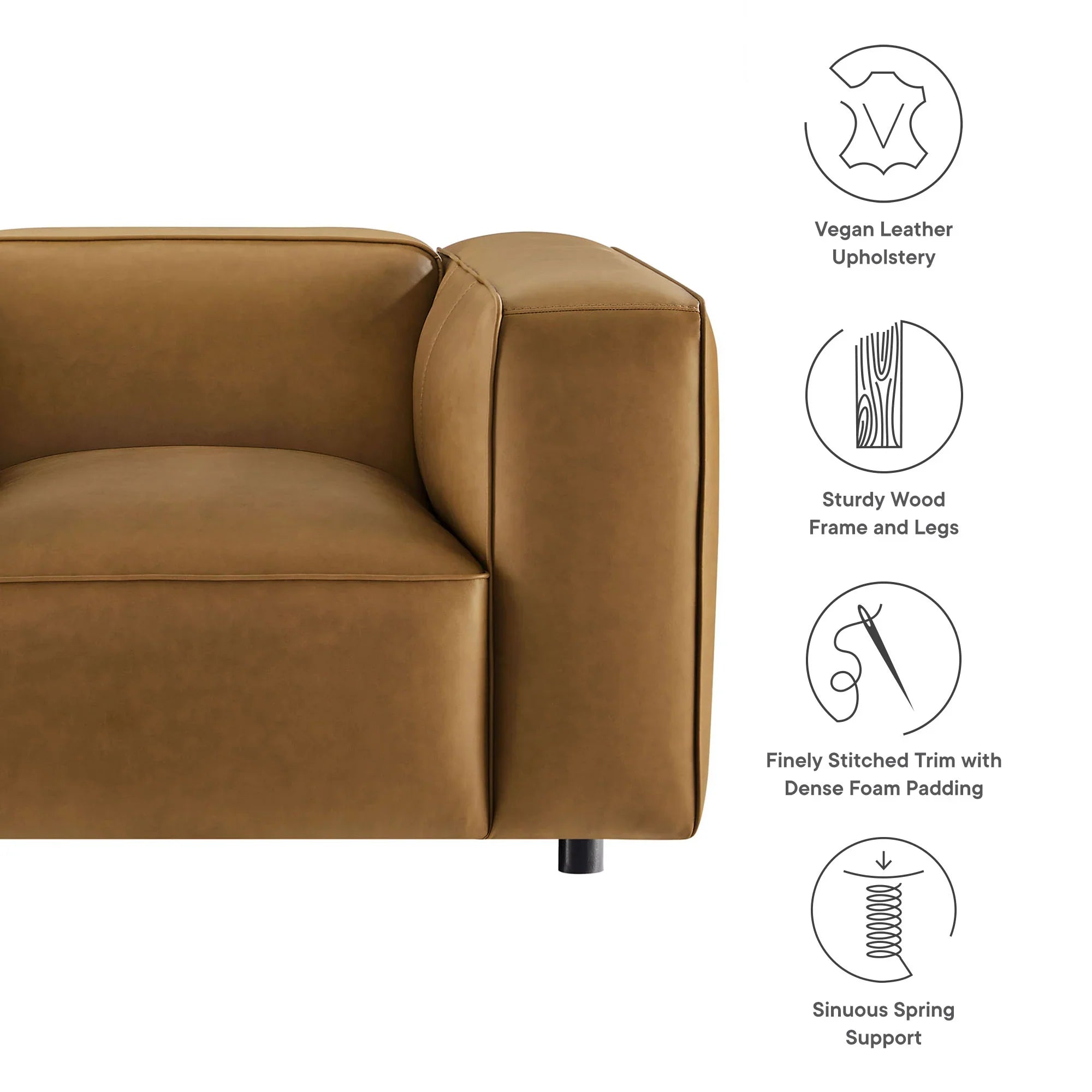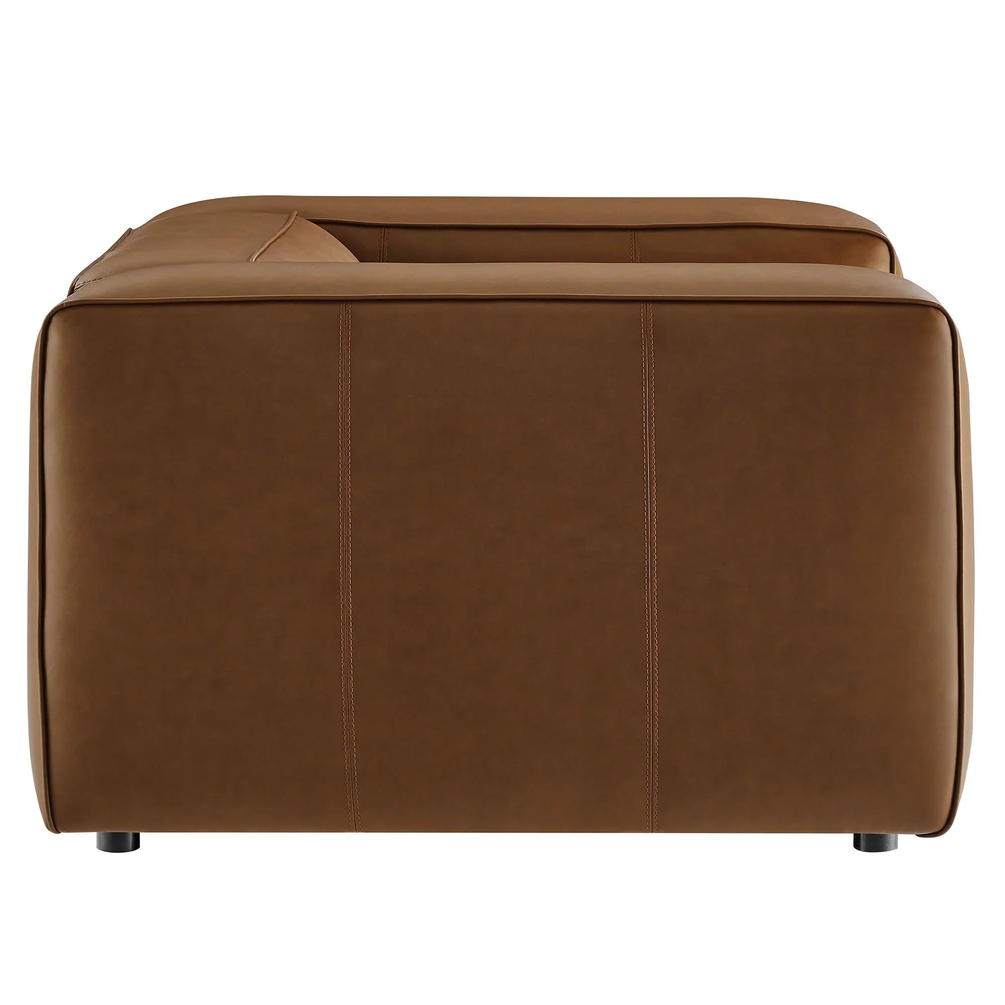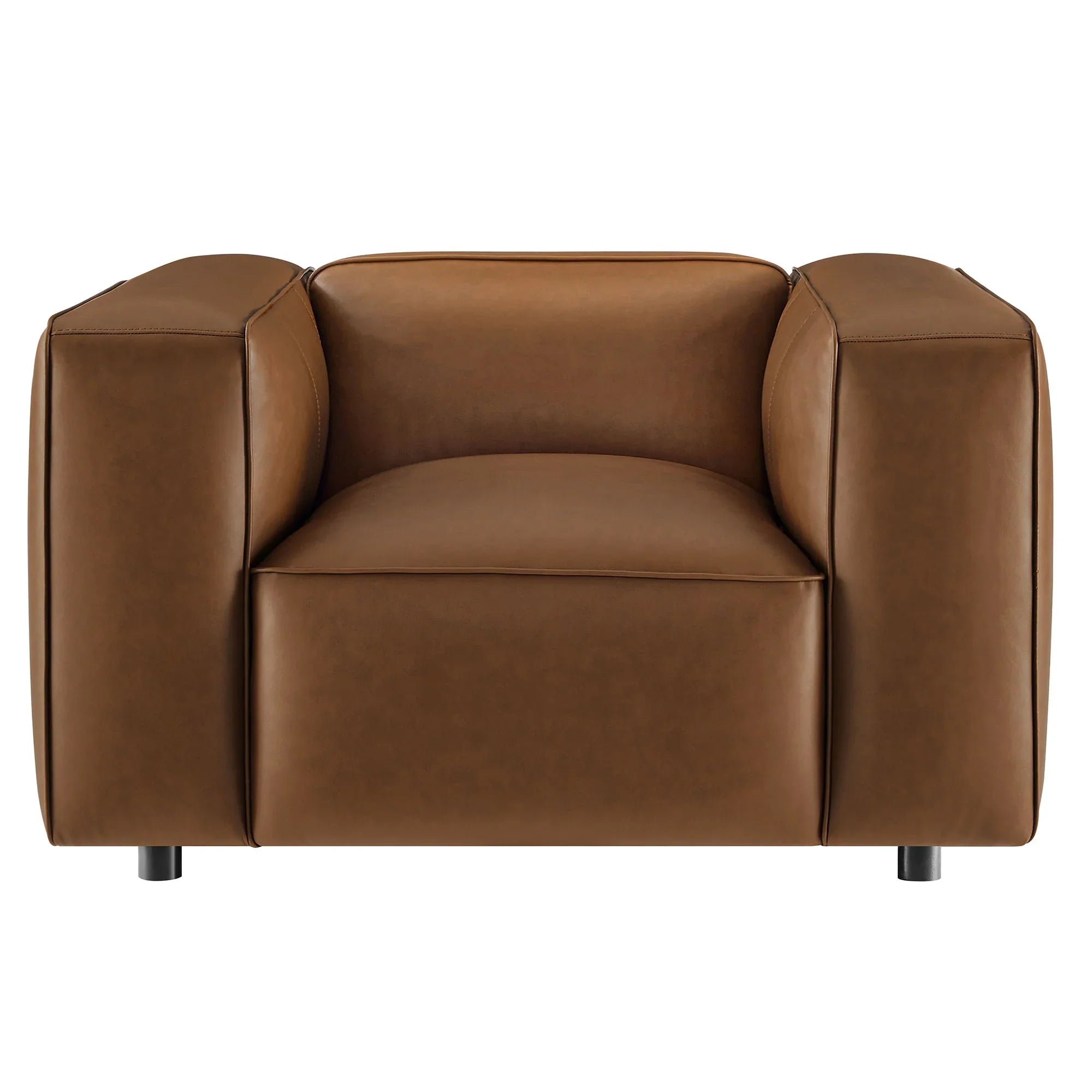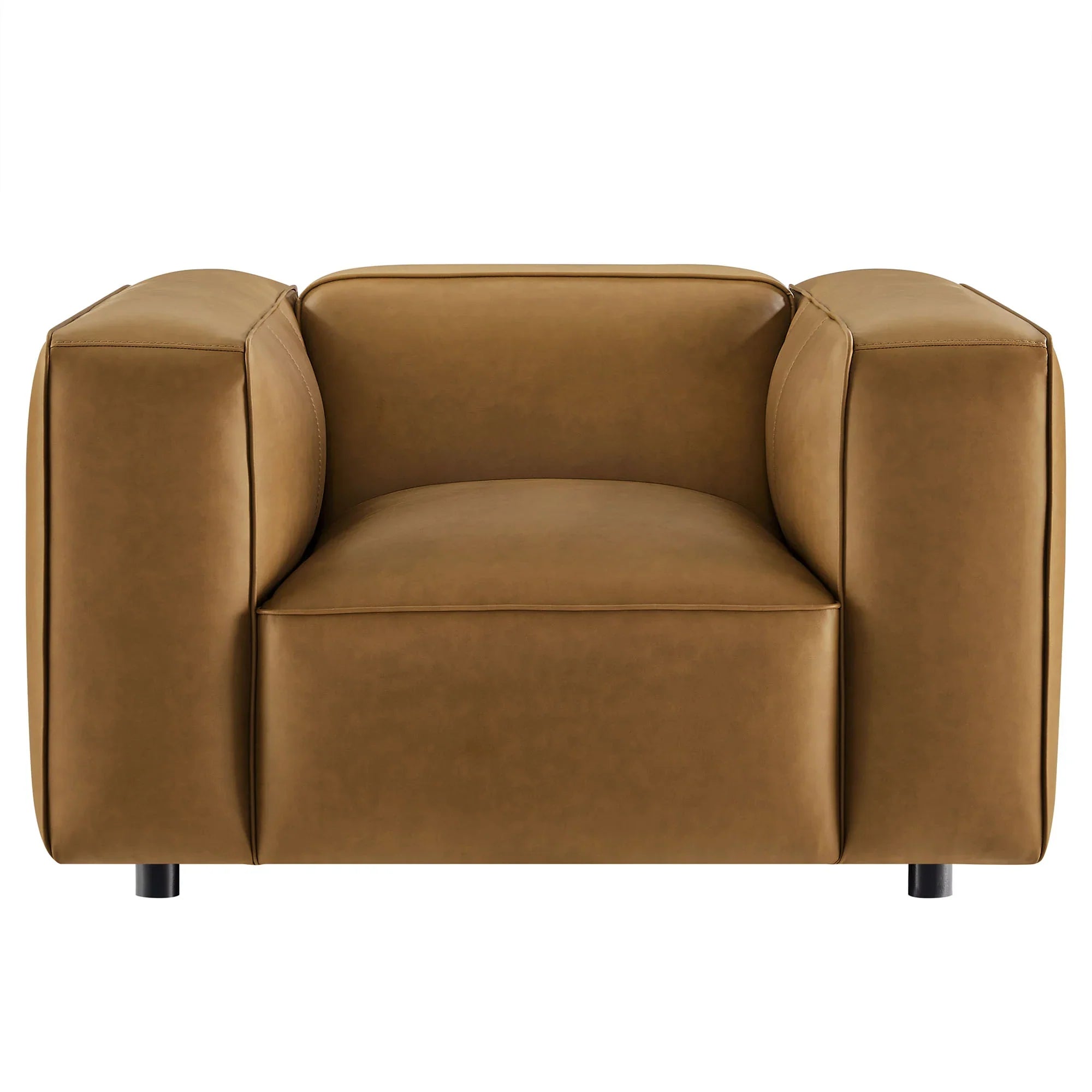 Make your living room feel instantly stylish with the low-key elegance of the Auren Vegan Leather Armchair. Wrapped in smooth, high-quality faux leather, this oversized accent chair blends effortlessly into different interior styles, offering subtle charm. The deep seating invites relaxation, while the low backrest and wide, cushioned armrests create a cozy yet modern aesthetic. Finely stitched trim along the seams adds a tailored finish, while the entire faux leather accent chair is generously padded with dense foam for a soft, supportive feel. Built on a sturdy wood frame, the Auren Club Chair features sinuous springs for firm, flexible seating that holds its shape. Plus, this single sofa chair ships fully assembled with just the legs to attach, so you can relax and enjoy it right out of the box. Whether placed alongside your current furniture or paired with other Auren sectional pieces, this faux leather modular armchair offers versatile styling options to complete your space. Weight Capacity: 800 lbs