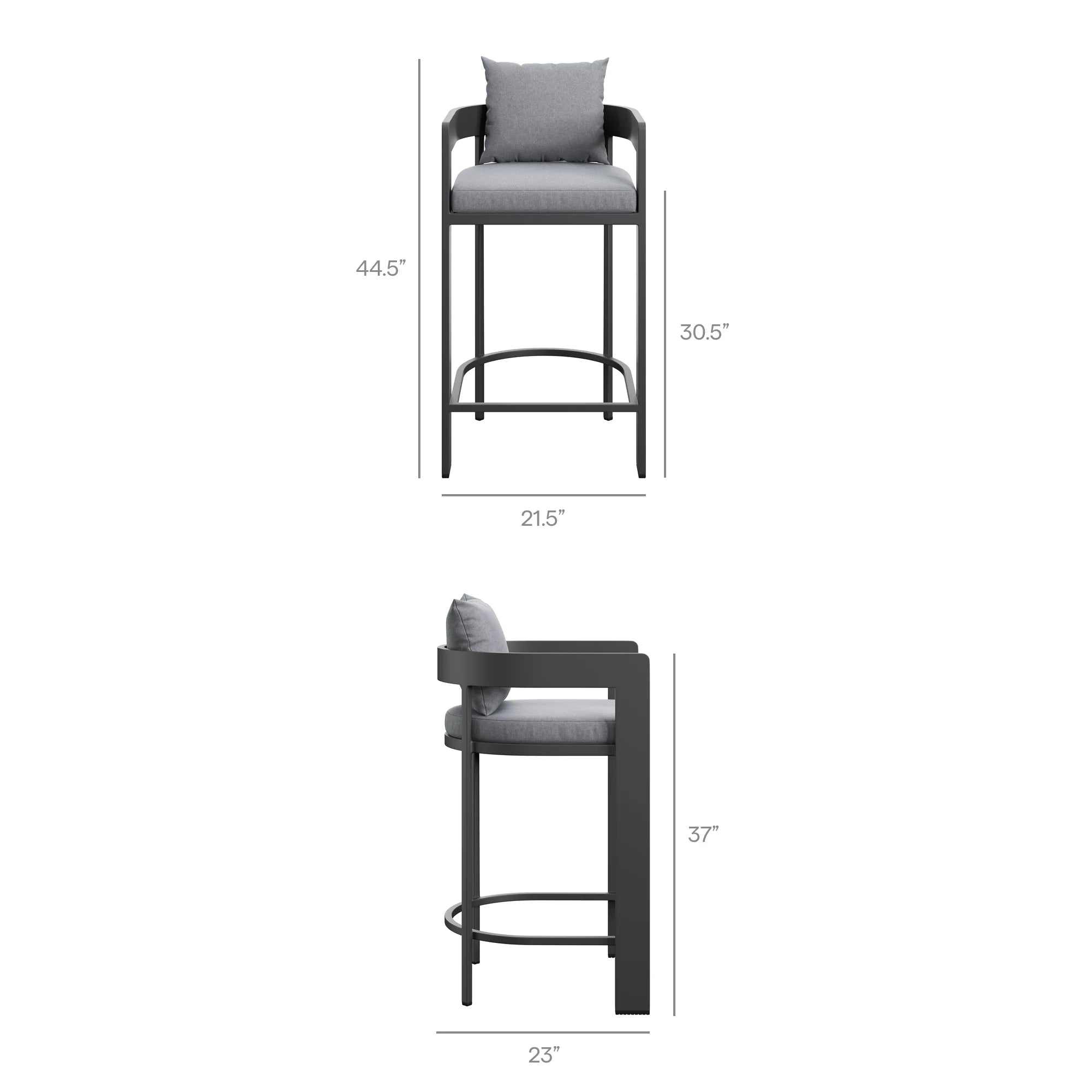 PRODUCT MEASURES: 31"l x 77"w x 44.5"h, STOOLS: 23"l x 21"w x 44.5"h, TABLE: 31"l x 31"w x 42"h