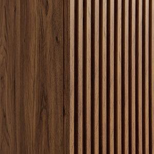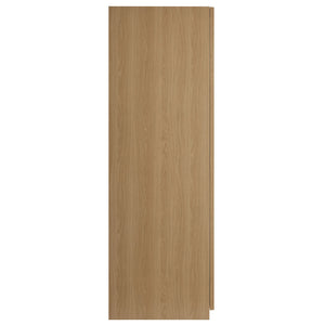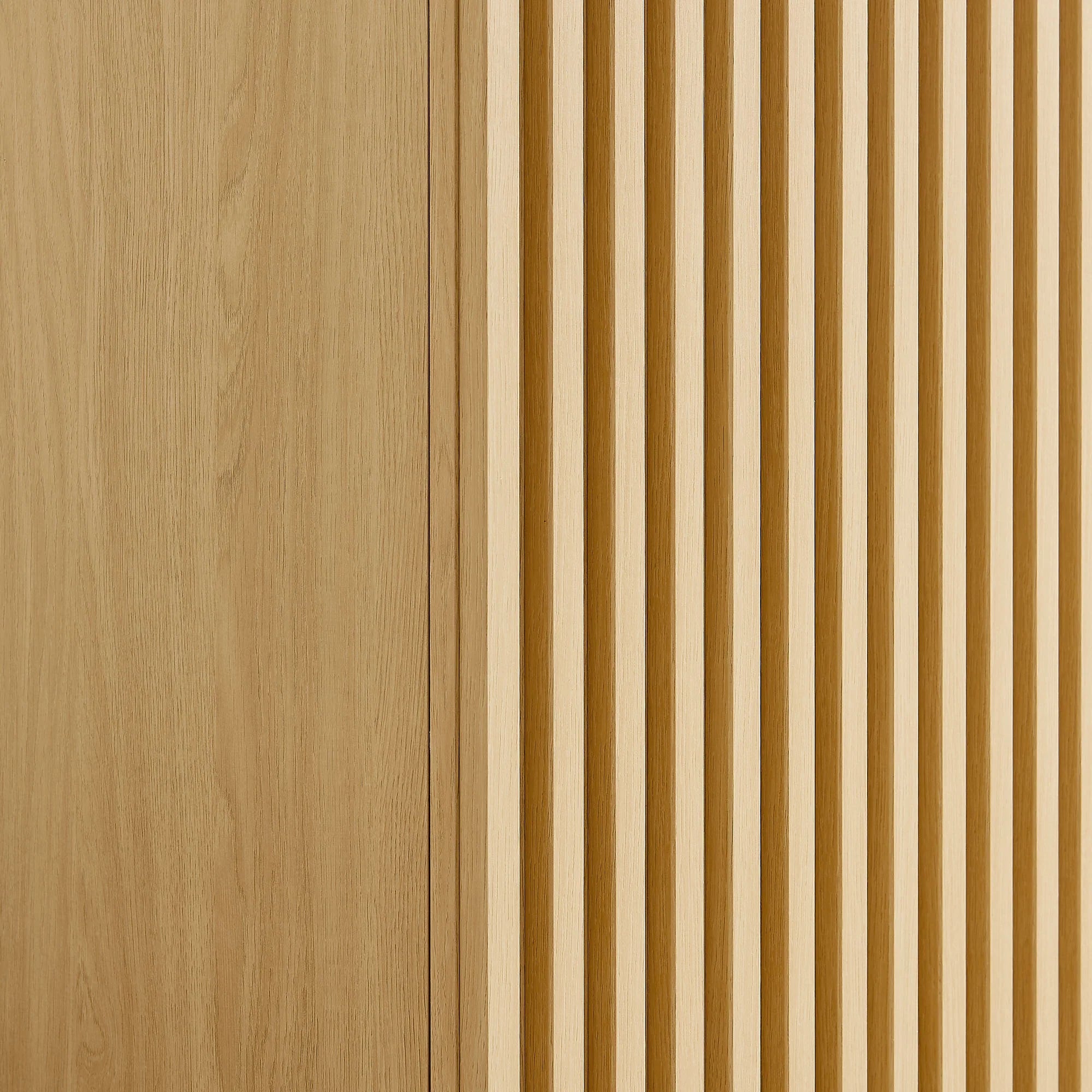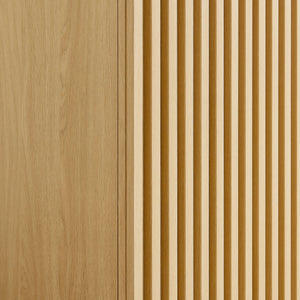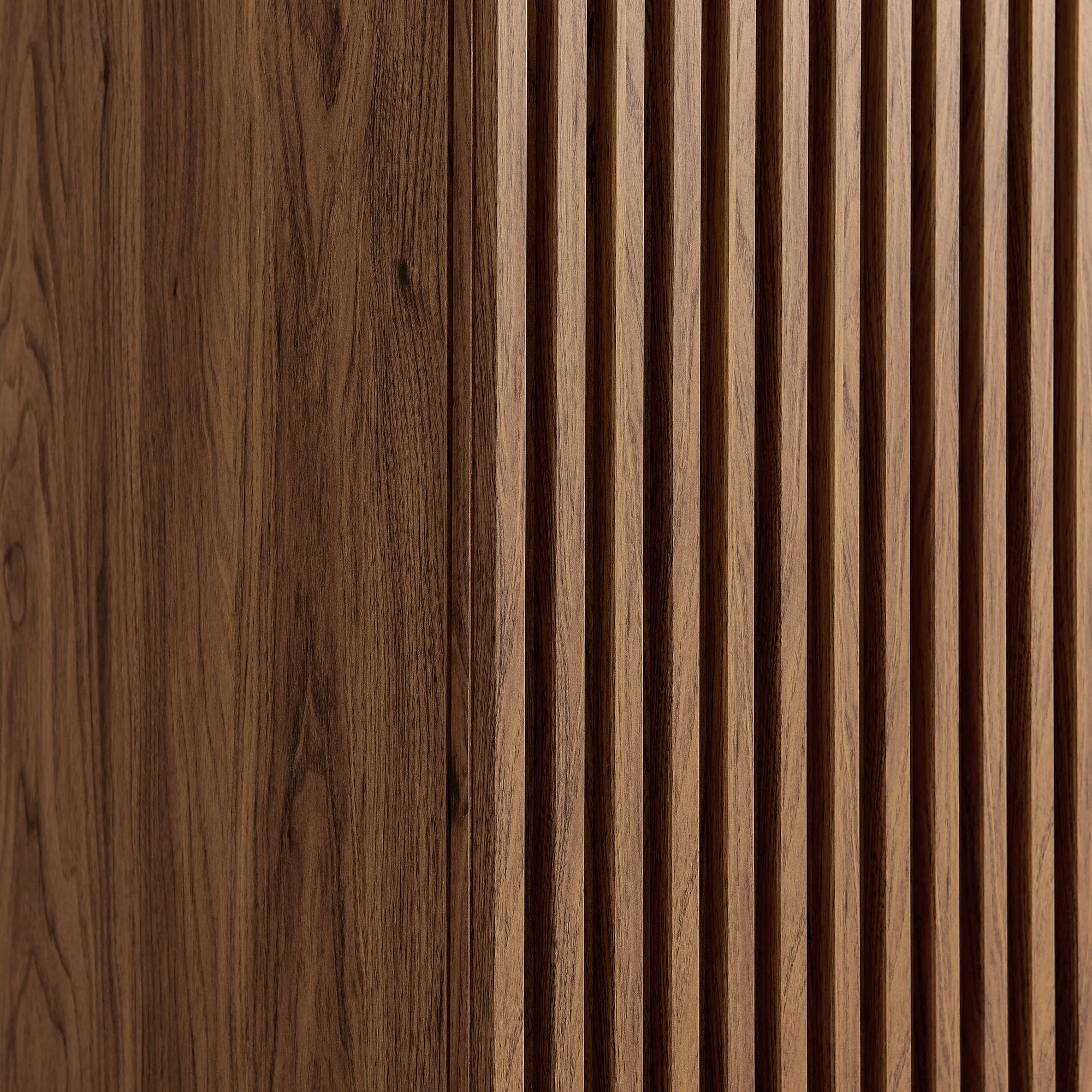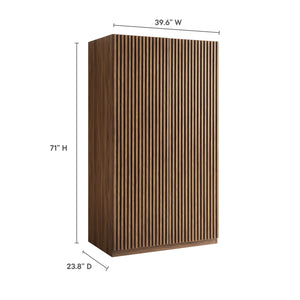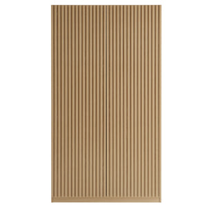 Tap into mid-century aesthetics with the Render Bedroom Wardrobe. This 2 door wardrobe with adjustable shelves features a durable particleboard frame with smooth wood grain laminate and vertical slatted detail all the way down the doors for a sleek, stunning look. The wardrobe armoire closet includes a spacious storage area behind soft-close doors, complete with two sturdy metal clothing bars and adjustable shelves for customizable storage space. This versatile 71 inch wardrobe cabinet with hanging rods provides ample room for organizing folded and hanging clothes, linens, and more. Perfect as a tall storage cabinet for bedroom or living room, this modern wardrobe with vertical slatted doors combines style and functionality. The Render Freestanding Closet boasts a solid construction, making it a practical addition to any room. Assembly required.